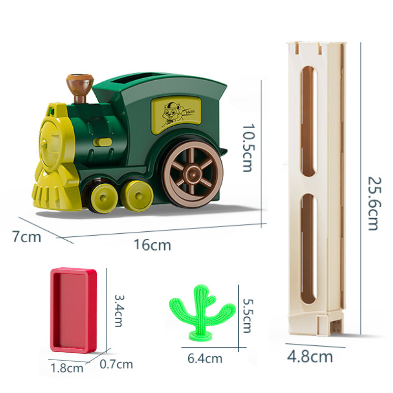 The train runs on two AA batteries and, as soon as you flip the switch, it starts moving and placing the tiles.