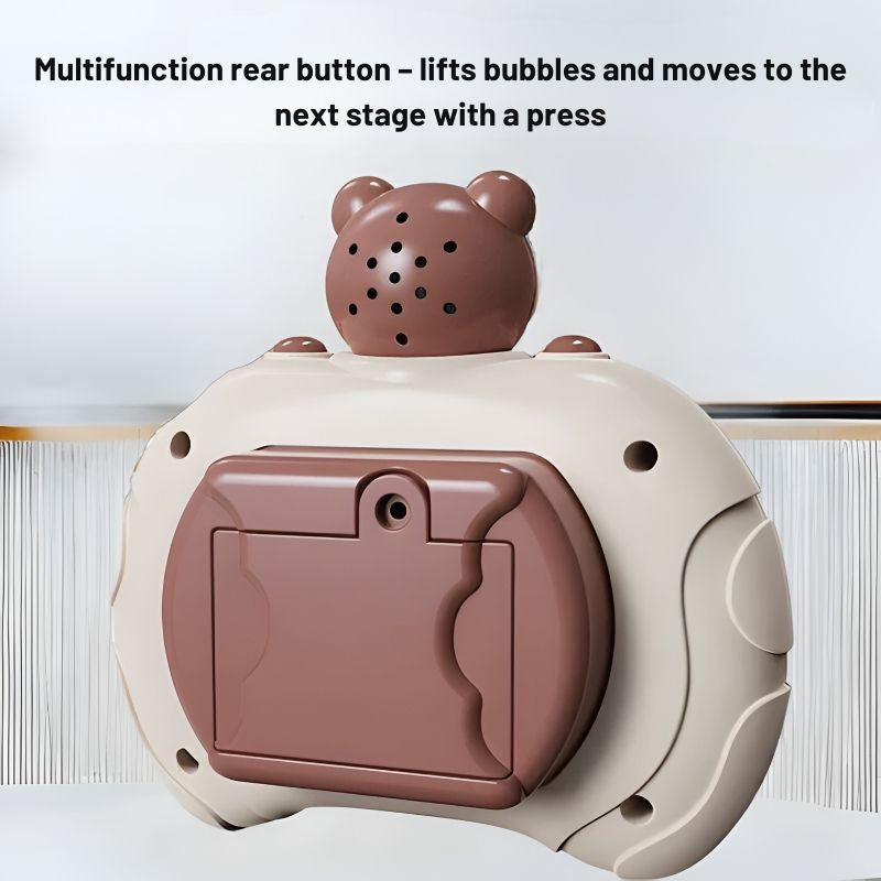 No batteries are needed; by pressing the rear button, the bubbles go back up and you can start again.