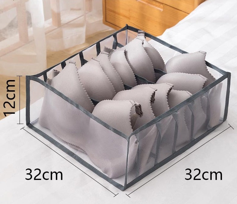 The widest ones, 32 x 32 x 12 cm, are made for clothes you do not want to fold, or to store a larger amount of underwear or socks, with 6 dividers to separate as you wish.